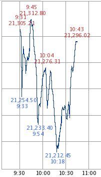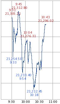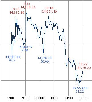 その後の10時過ぎくらいからの上昇幅を縮めた要因は、香港ハンセン指数の下落といった中国系株式市場の低迷と、為替相場がやや円高に振れていることと思われます。