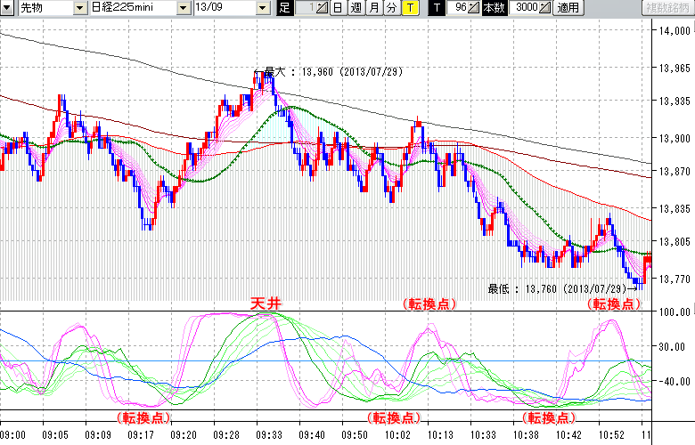 日経225mini先物チャート : 96ティック足
