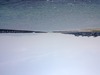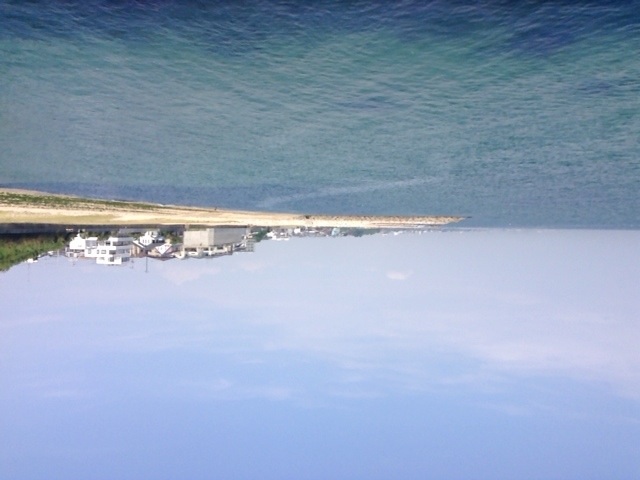 空と海が逆さま写真ですね。^^