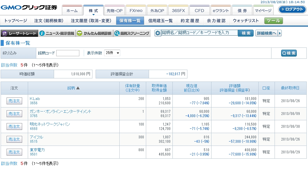 急にシリアの問題が緊迫したこともありましたが、それにしても悲惨すぎます。株自体が7,900円の損失で手数料が460円合計-8,360円。株主優待でもらえるクオカード3,000円分なので、差額でも-5,000円以上になっております。。。