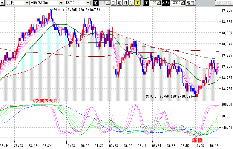 日経225mini先物チャート : 96ティック足