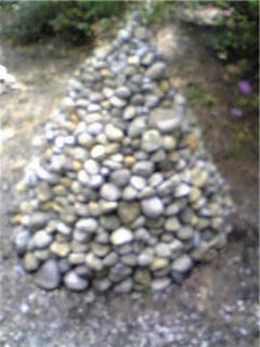 山歩きをしていると色々な虫に出会います。最近はまだヘビにあっていません。道路工事の音で逃げてしまったんでしょうか?地下鉄の駅のすぐ上の山です。夏には蛍も出るようです。誰が作ったかこんな石が積んであります。根気の要ることをやった人もいるのですね。これを見つけてうれしくなりました。ダイエットには歩くのが一番です。