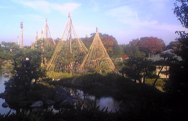 金沢兼六園では観光目的ではなく実用です。雪吊りをしないと数百年の松の老木等が折れるからです。11月1日になるとすぐに作業を始めます。もう全部完成しているでしょう。