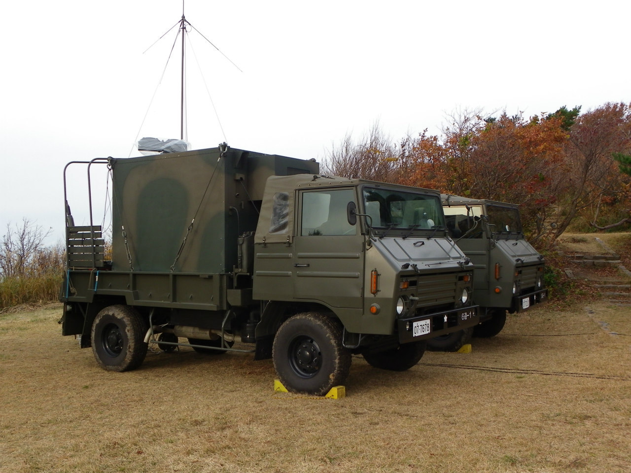 ところで一昨日、晴れていたので弥彦山と言うところの山頂へ行って、隣の多宝山ていう頂へ石段を登って行きましたら、なんと山頂に自衛隊のジープが2台w( ▼o▼ )w オオォォ!!