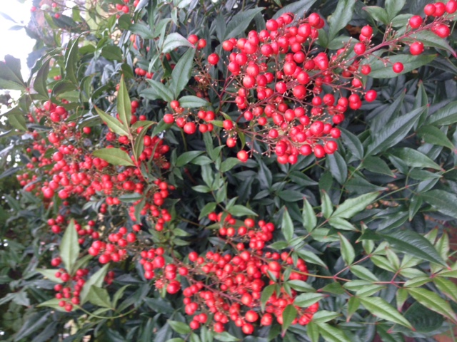 南天の赤色は雪に映えますよね。^^