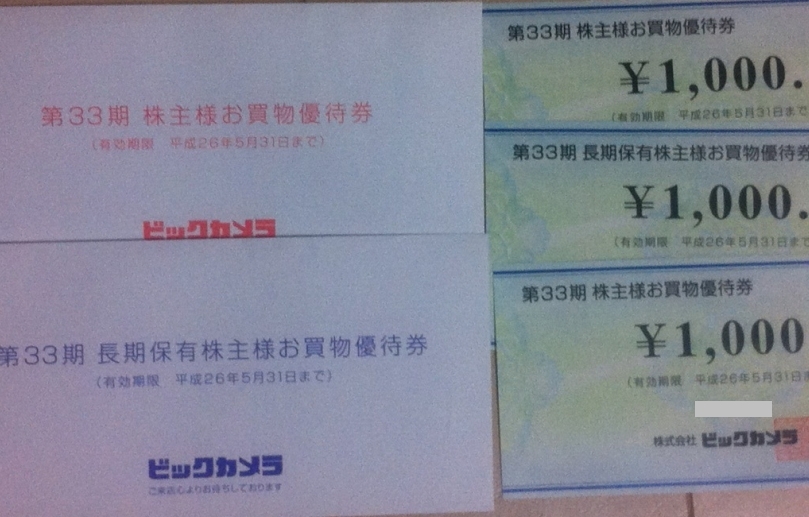 ビックカメラの優待券が昨日到着しました。