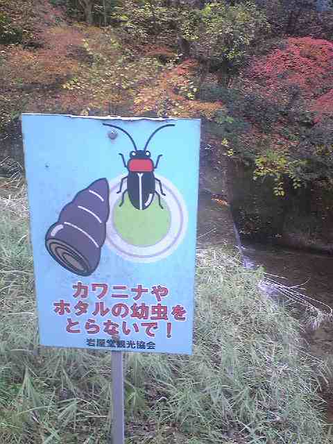 紅葉は終わって後片付けしてました。ホタルがいるんですね。