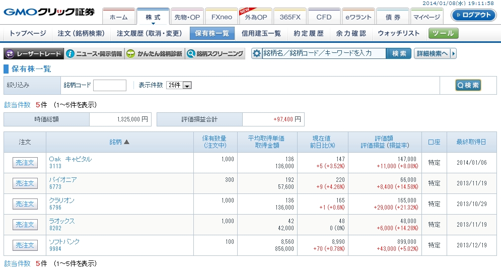 いや~これまで何度も死んでいましたからね。もう値動きの荒い株は引っ張りません(`・ω・´) まぁ決済後に再びS高ってたわけですが・・・(ノ∀`)アチャー ちなみに口座状態は相変わらずで、以下のようになっています↓