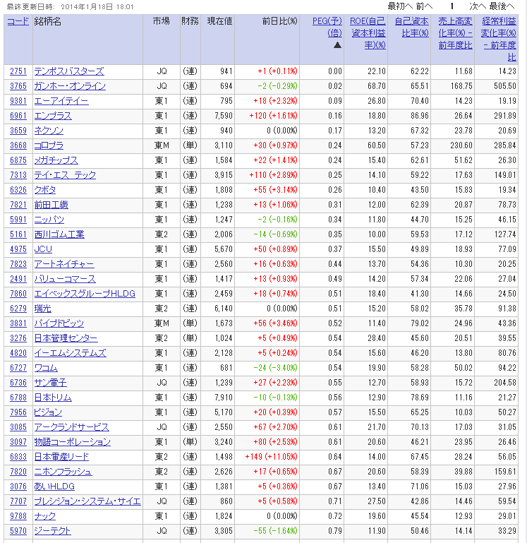PEGランキング、明日買おうと思っていた銘柄がチラホラしてますねぇ。