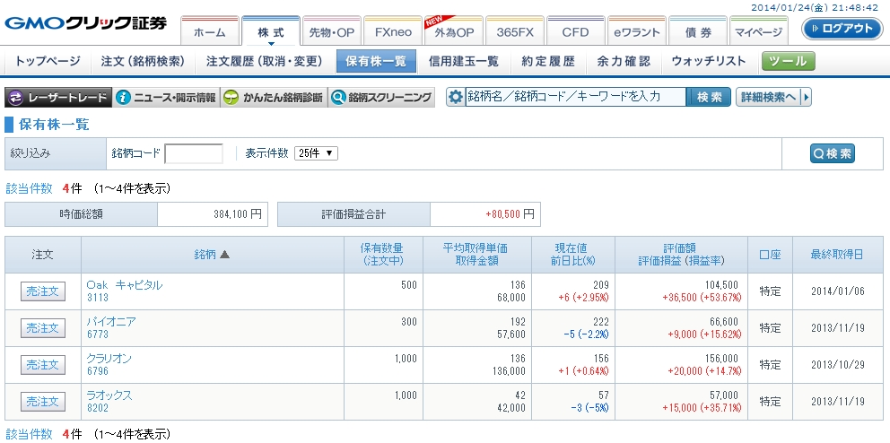 ソフトバンク(9984)は早めに切っておいて正解でしたねε=(。・д・。)フー なんか値動きが怪しい感じでしたし、ポジション的にも重たくなっていたので思い切って一昨日微益撤退しておいて良かったです。