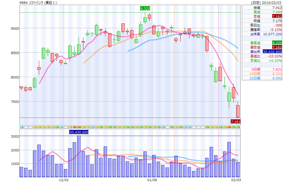 ソフトバンクの売り圧力(信用買い残)が多すぎて、
