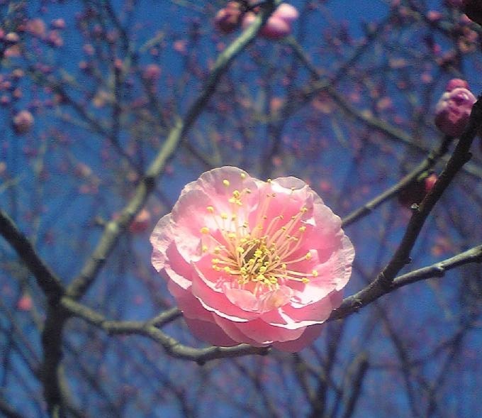 雪が降る前に紅梅を見に行きラッキーだった。盆梅展は見損なったがよかった。
