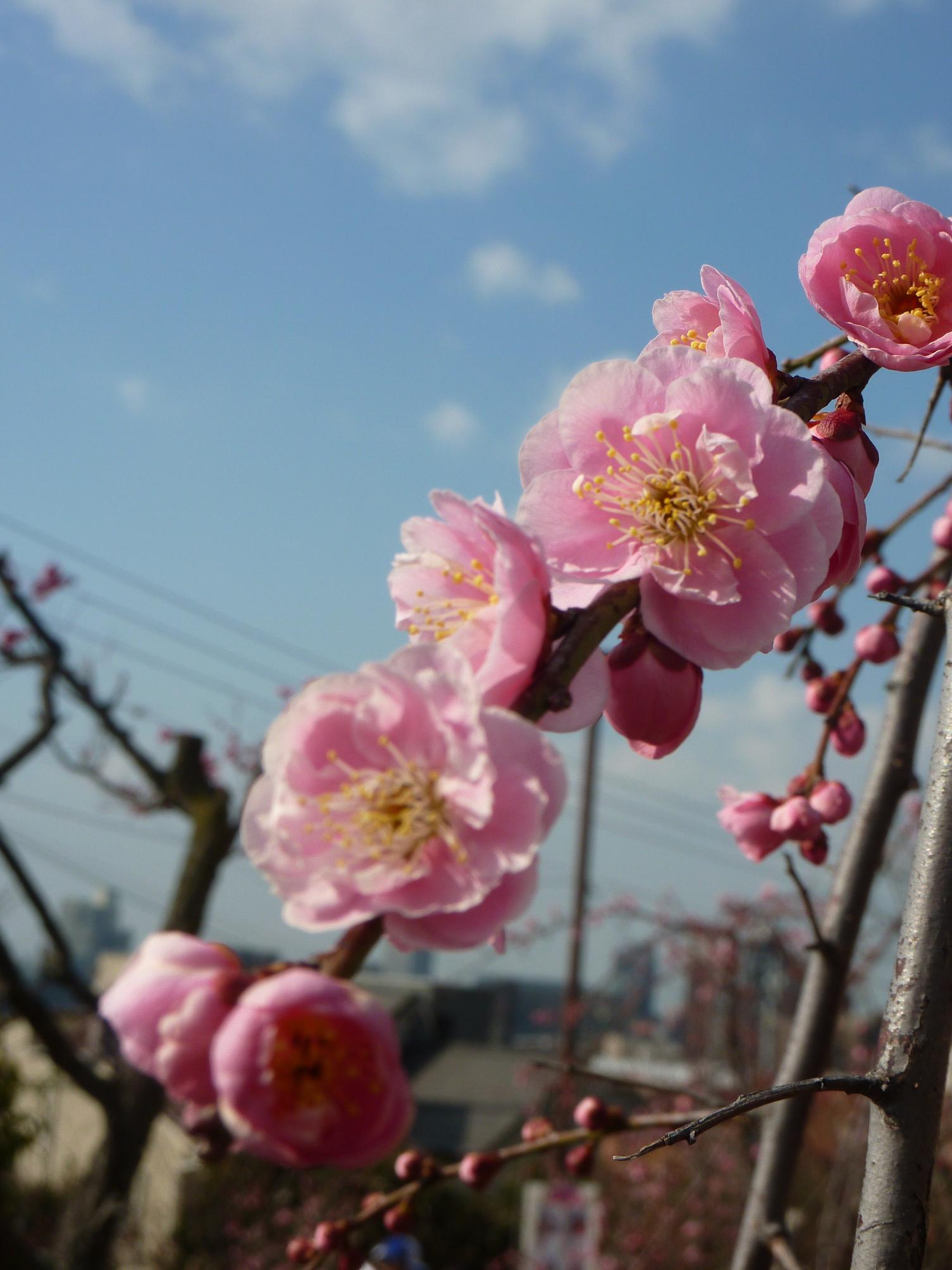岡本梅林公園の梅の写真は紅梅でしょうか。桃の花かと