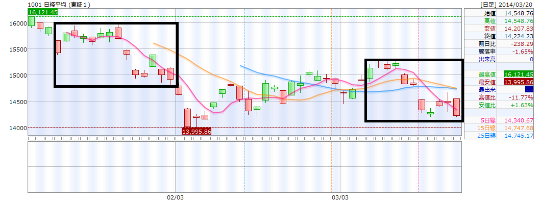 金曜のダウの上髭やナスダックの陰線は厳しい感じ。