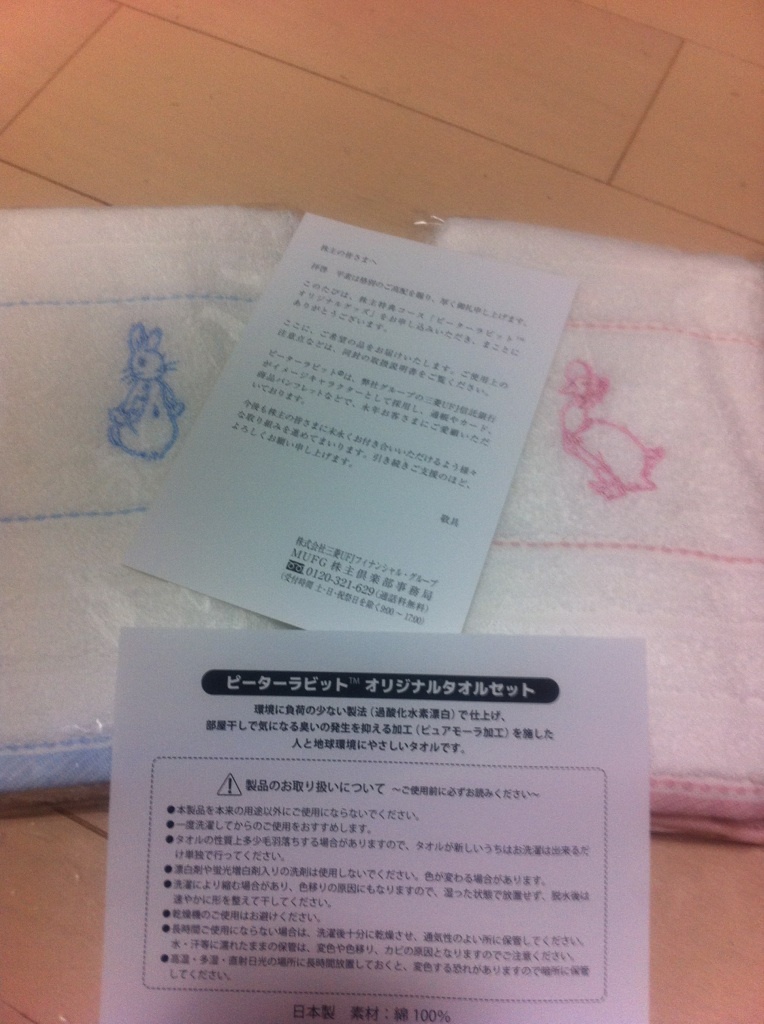 って、2年前に主人が貰ったタオル、まだ使ってないですが(爆)