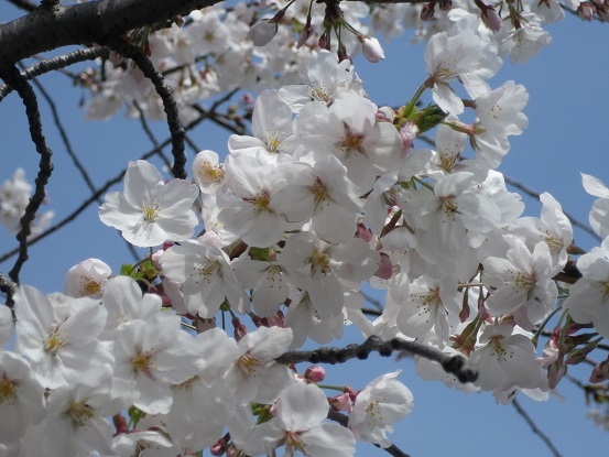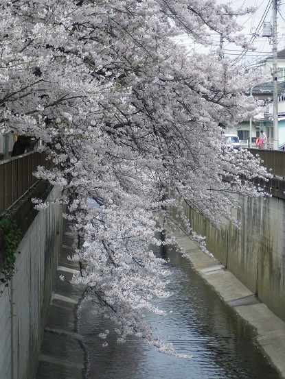 呑川べりの桜。新幹線と中原街道の間、各所に咲いています