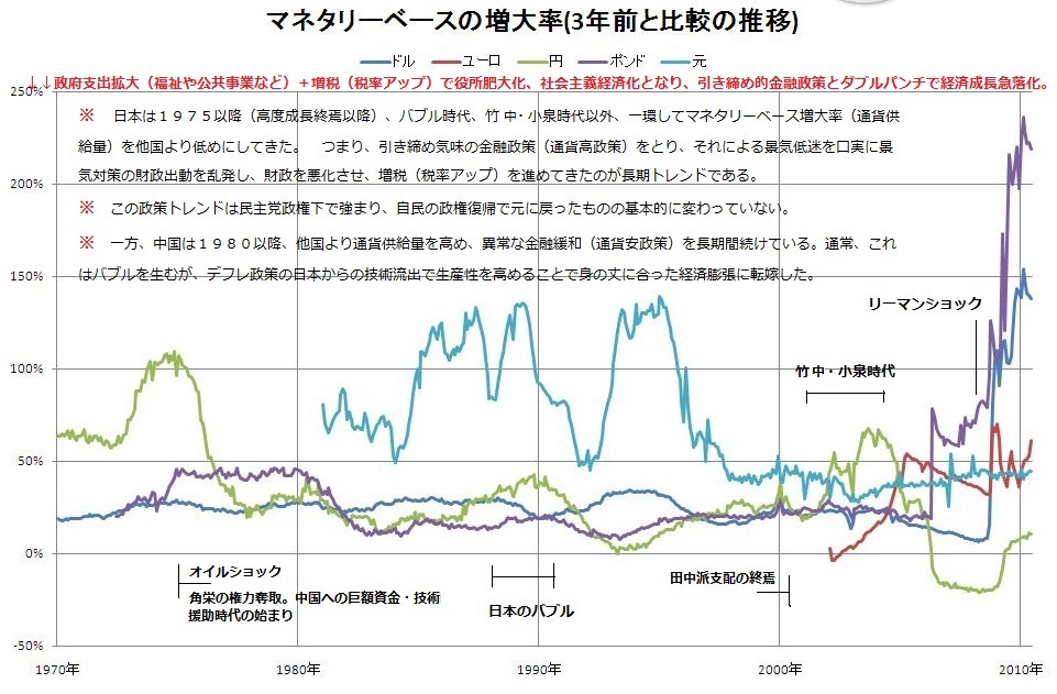 で、一部(多数?)のマスコミ、エコノミスト(日本のマスコミ、エコノミストは福祉拡大路線の左翼系(民主党系)や役所のポチがほとんど)を通じて喧伝されてる日本低成長論が、財務官僚たちが狙う金融緩和抑制=景気抑制政策を目くらましする援護射撃になってる。 マスコミ論説自体が財務官僚たちの宣伝(国民洗脳手段)になってる側面が大きい