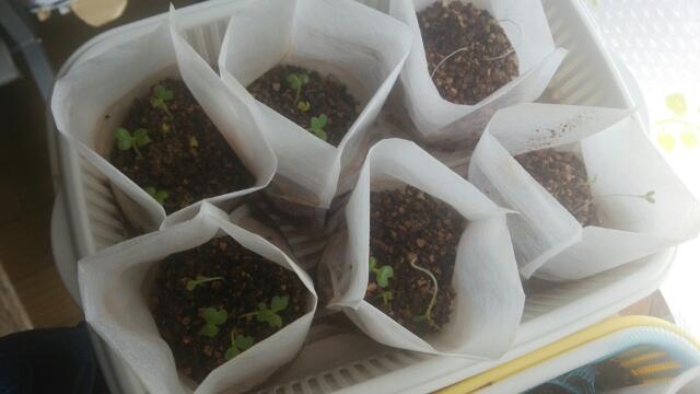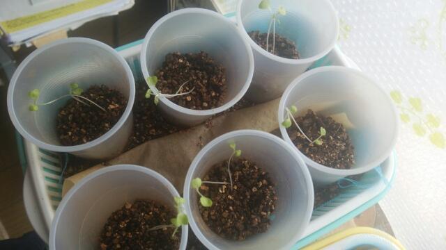 部屋では温度が高いので、苗が育つが、