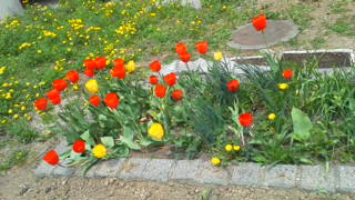 低い塀の向こうに見える花に癒されてますが