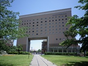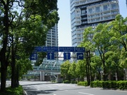 ↑汽車道から見たクイーンズタワー。A,B,Cの三つのビルがあります。