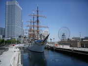 ↑みなとみらいにある日本丸。左のビルはクイーンズタワー。この辺は三菱造船だったかの跡地