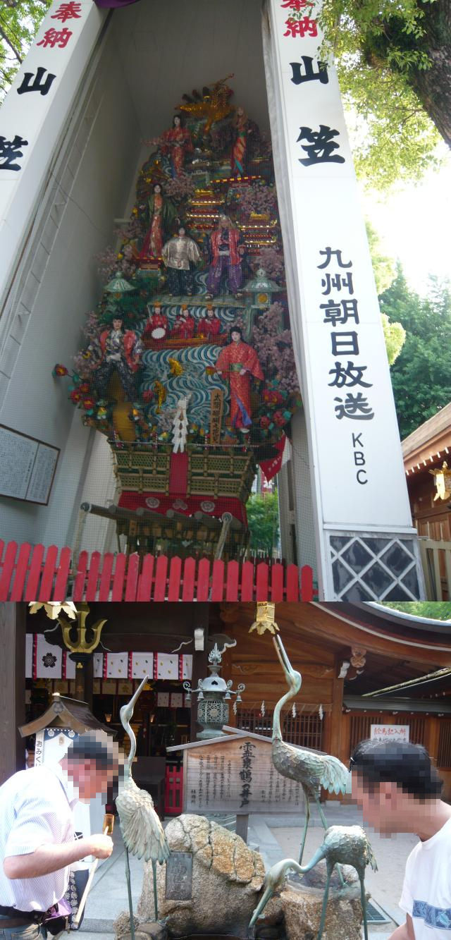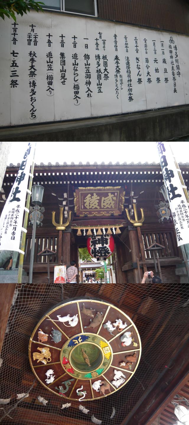 櫛田神社は大幡主大神・天照大神・素戔嗚大神を祭った神社で、博多の有名な祭事はどれもここで行われているらしいですね(写真左上)