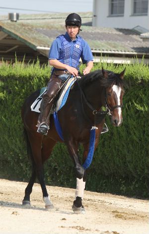 前回は電車が止まるほどの強風に嫌気を出したディグニティくん、しっかり調教を積み、休み明けながら、好い状態。