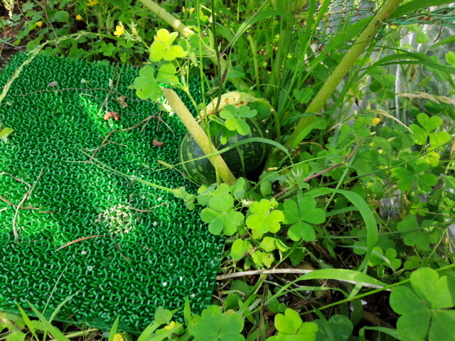 玉ねぎの植えてある場所に草が生い茂って