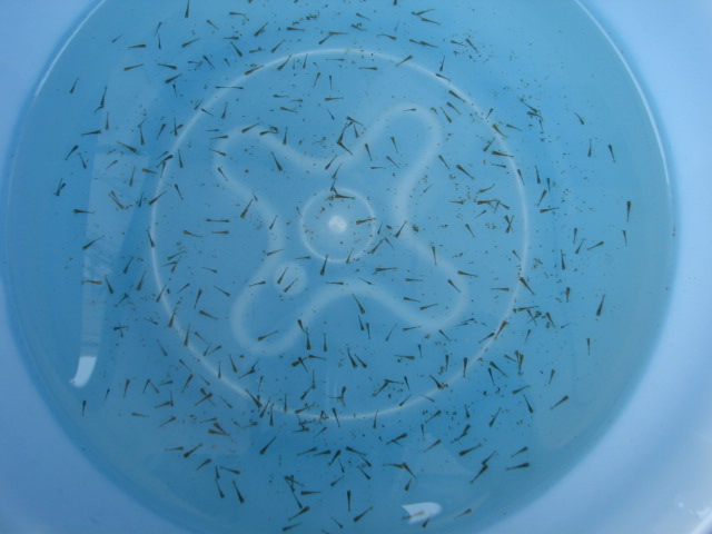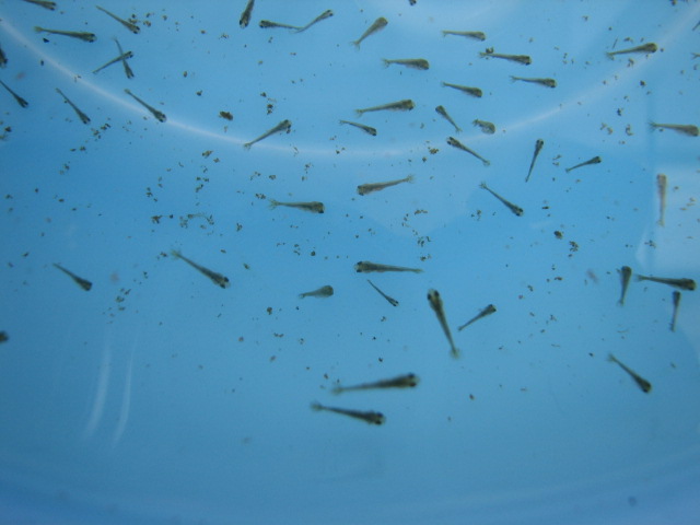 稚魚たちはエサの中で泳いでいます、食べ放題です!