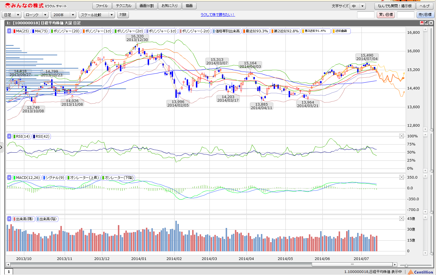 日経平均はみんなの株式で見れる「ミラクルチャート」でみていますが