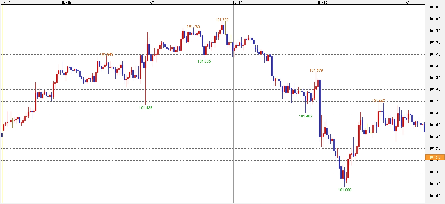 7月14日~7月18日の週。ドル円相場は1ドル=101.09~101.79円。