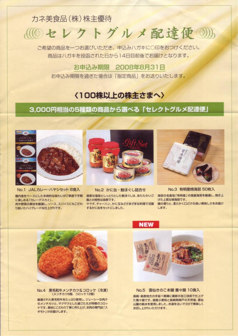本日(2669)カネ美食品の株主優待申込書到着しました。