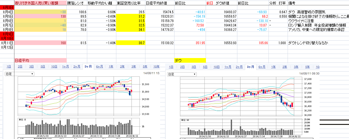 ダウの値動き、ドーン かと思ったら、少し止まってきたなあ。