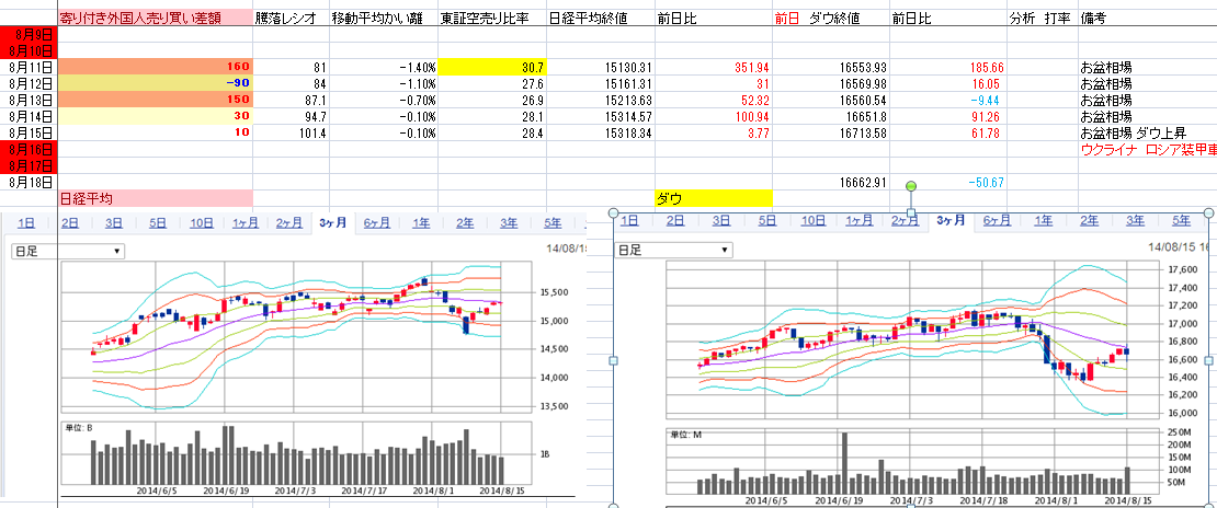 ダウは例の装甲車攻撃のニュースで急激に落とした後 そこまでじゃないと考え直し、買いの戻しが入った。出来高とチャートが物語っています。ということは何もなければまた回復の流れへ。何かあれば暴落の要素をはらんでいますね。