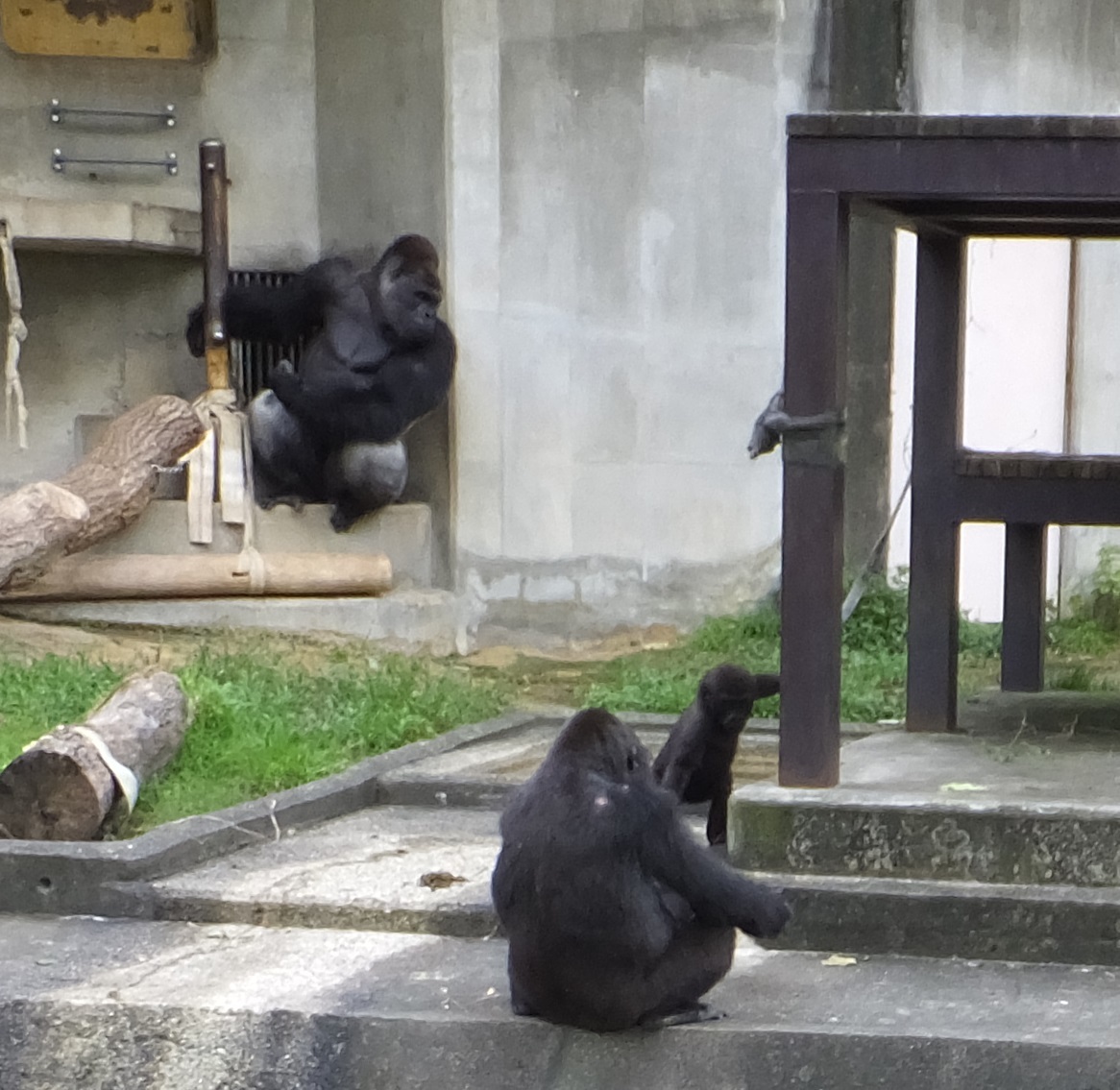 3時過ぎに行くと餌の時間、ゴリラも餌をもらって、オスと、メスは別々。