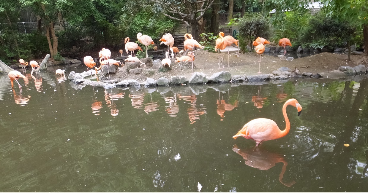東山のフラミンゴは比較的群れが安定して、子供が多い。