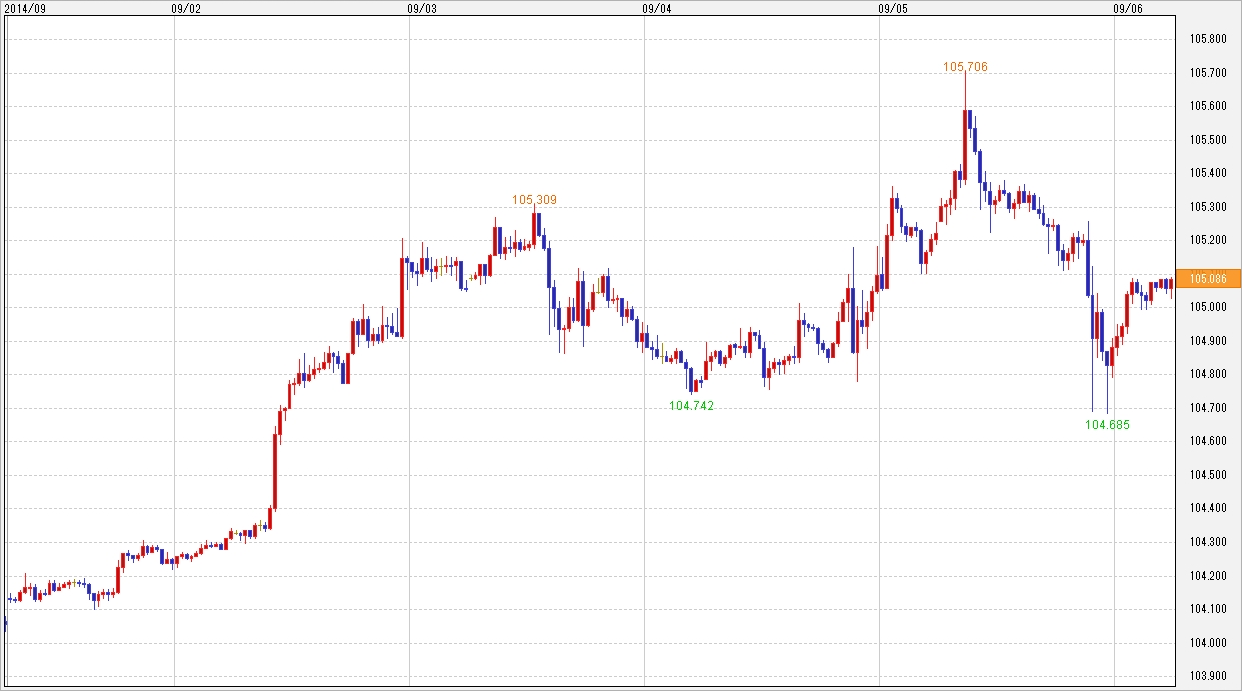 海外市場は、1ドル=104.10~104.30円台で小じっかりとした推移だった。欧州市場では、スタートこそ弱含んだが、その後はジワジワと上値を伸ばす展開。NY市場はレーバーデーの祝日のため休場となり、この時間帯は目立った値動きはなかった。