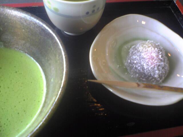 >ちょっと前 京都で まっちゃ 一口で 飲んで