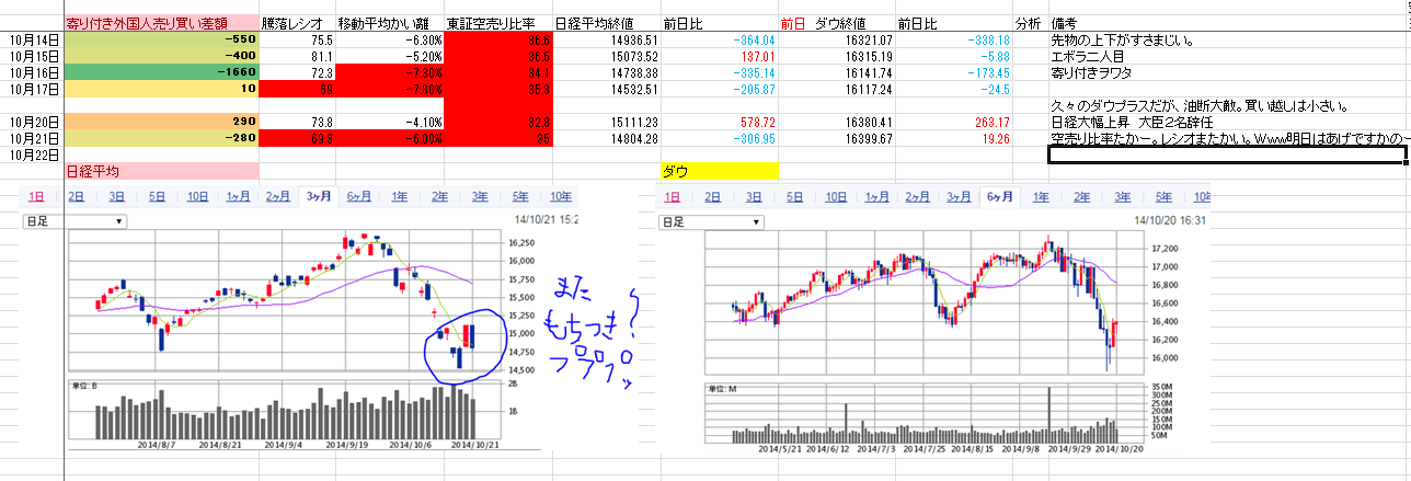 騰落レシオ 下がった。 空売り比率 あがった。原因は 中国か。もともと解ってたネタだし、いつもの話だね。まあ、昨日の調整だねー
