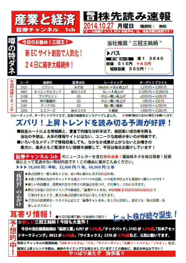 これは今日の新聞だけど、実は先週末に「パス」の情報を出していた。