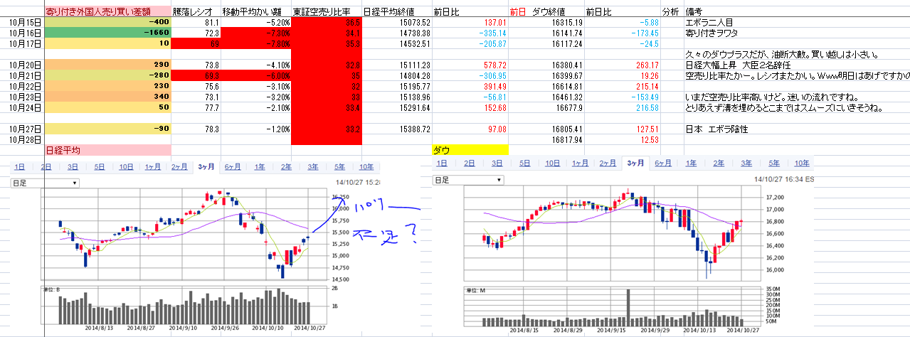 少しダウでも日本でも上昇力、出来高減ってますね。