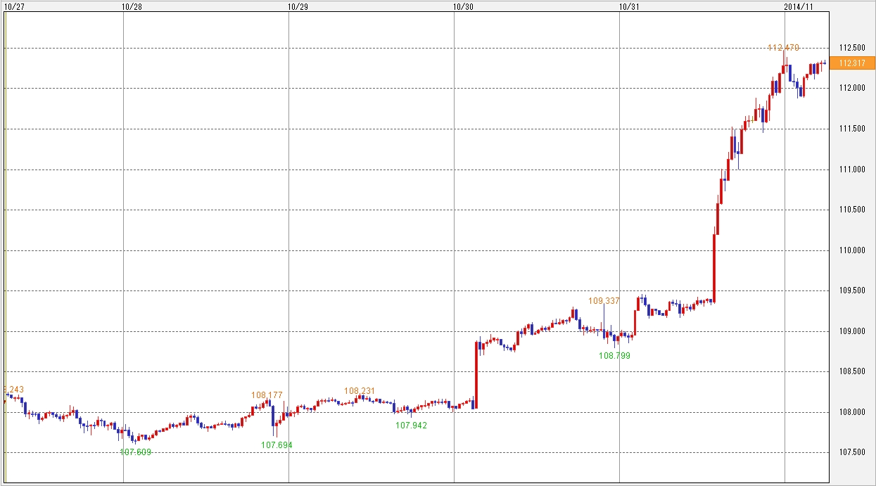 10月27日~31日の週。ドル円相場は1ドル=107.60~112.47円