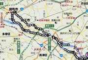 径路はこんな感じ↓ (Yahooの地図の距離計測の画面)