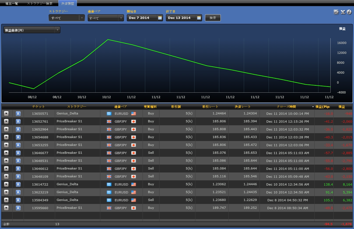 おい!PriceBreaker S1ェ・・・ヾ(・_・;)チョット… 泥沼10連敗ワロタwwwワロエナイ…。う~ん、流石にこの子(ストラテジー)は酷過ぎですね。まぁ損小利大形のストラテジーということもあり、勝率の低さは仕方ないのですが、それでも負けすぎですヽ(`Д´)ノプンプン