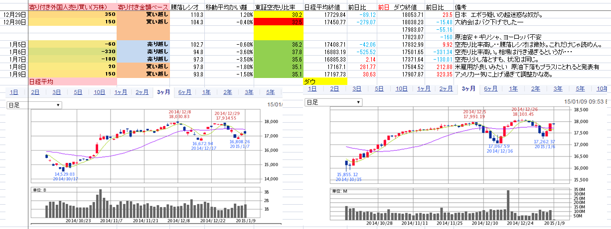 空売りがそのまま。これは相場の力無さを象徴している。のかなあ。