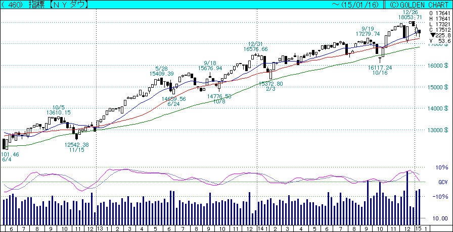 確かに金曜の東京市場は、一時スイスショックで¥500以上下げたにもかかわらず下ひげをつけており、紐育ダウの大幅反発と合わせて、高値寄りが期待出来るかと存じます。注目点は¥17,000を終値で超えてくるかどうかかと見ておりまする。