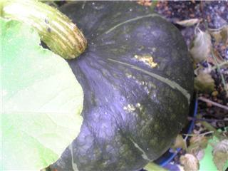 スイカとかぼちゃがなっています。スイカはまだ大きくなる前でこれからです。かぼちゃはもう直ぐ収穫です。だいぶ重くなってきました。これから雨に当たって大きくなるのでしょうね。