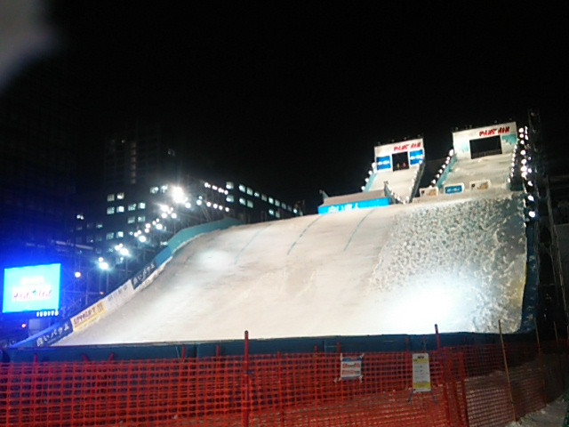 ここのジャンプ台はスキーのフリースタイル、ボードのハーフパイプ?の