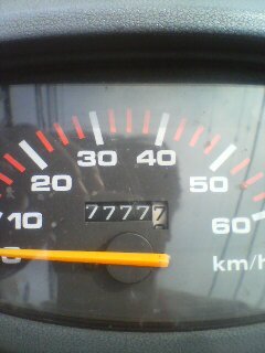 職場で業務用のバイクの走行距離が、7777.7kmになりました。