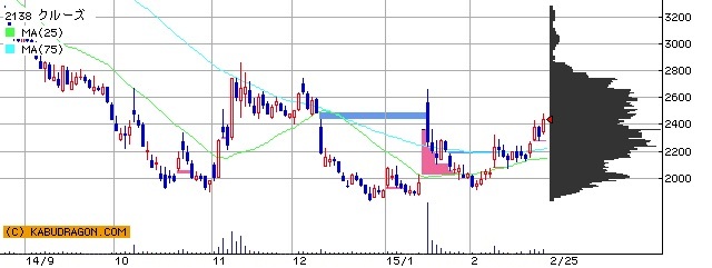 チャートでミニゴールデンクロスした所でインしてMA5がMA25を抜けて2440円で利確